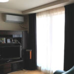 早良区E邸:23畳用200Vエアコン取付、LED照明取付工事、オーダーカーテン